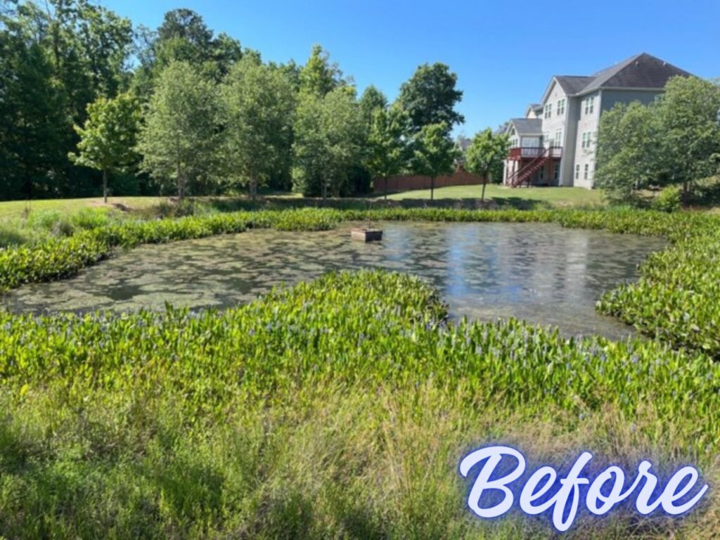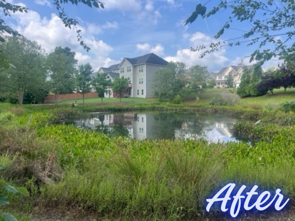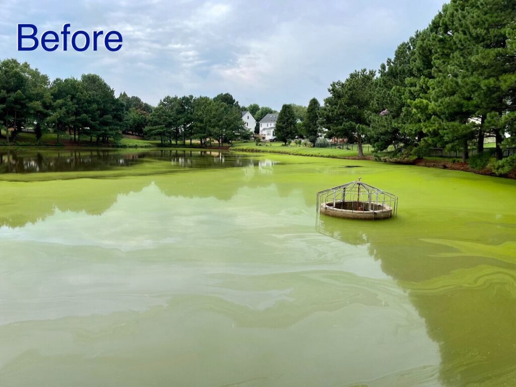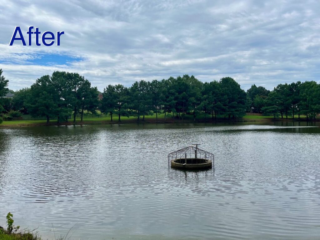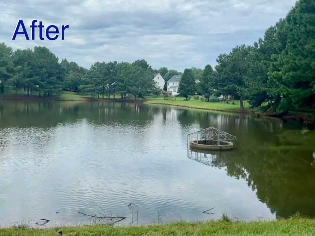 Is your pond or stormwater device looking a little green? We can help! Our specialized treatments and regular preventative care can keep your water body healthy and thriving. Check out the difference in these amazing before-and-after photos: