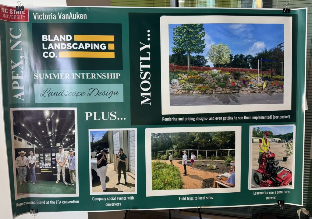We are so proud of Victoria for representing Bland Landscaping at NC State’s Internship Showcase yesterday! She shared insights into her summer experience in landscape design, inspiring future green industry professionals.