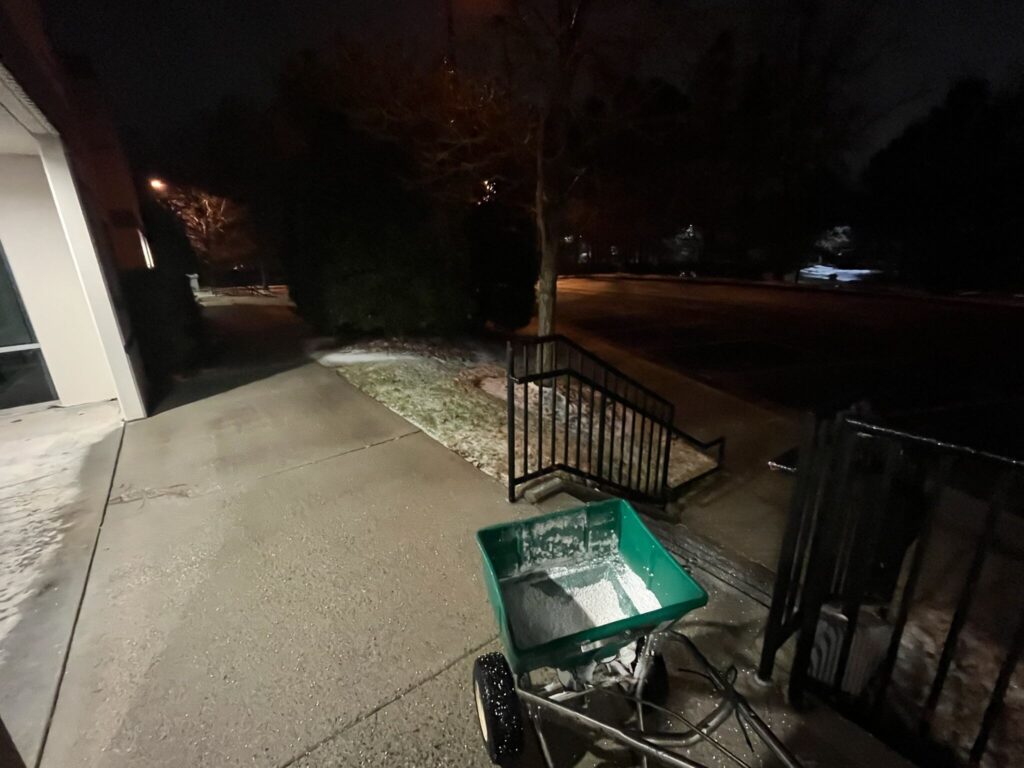 Once the storm hit, our teams worked through the night to make sure our clients’ properties were ice free before the morning work traffic hit. We continued to make our rounds and keep eyes on each property until it was time to apply our next round of ice prevention prior to businesses opening.