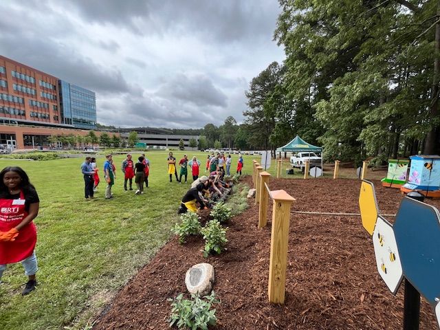 Our Durham branch had the pleasure of working with RTI International staff to install bee-friendly plantings around the newly installed Bee Downtown apiary.