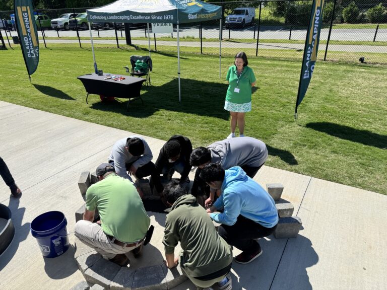 We had the opportunity to work with high school juniors and seniors learning about hardscape installation basics. Who doesn’t want to learn how to construct a back yard fire pit?